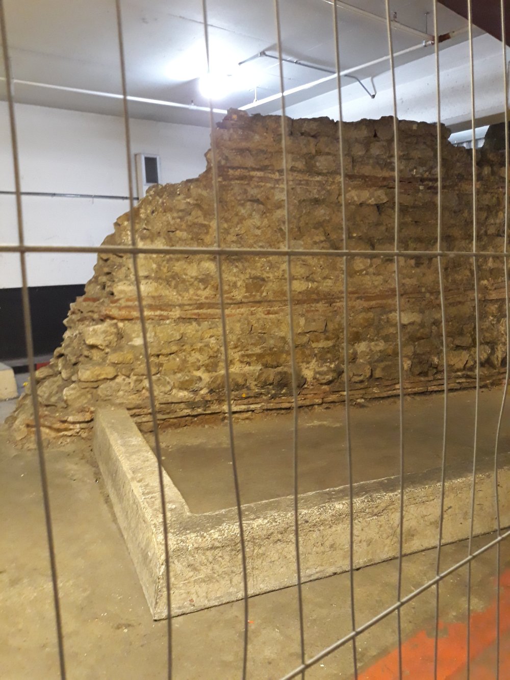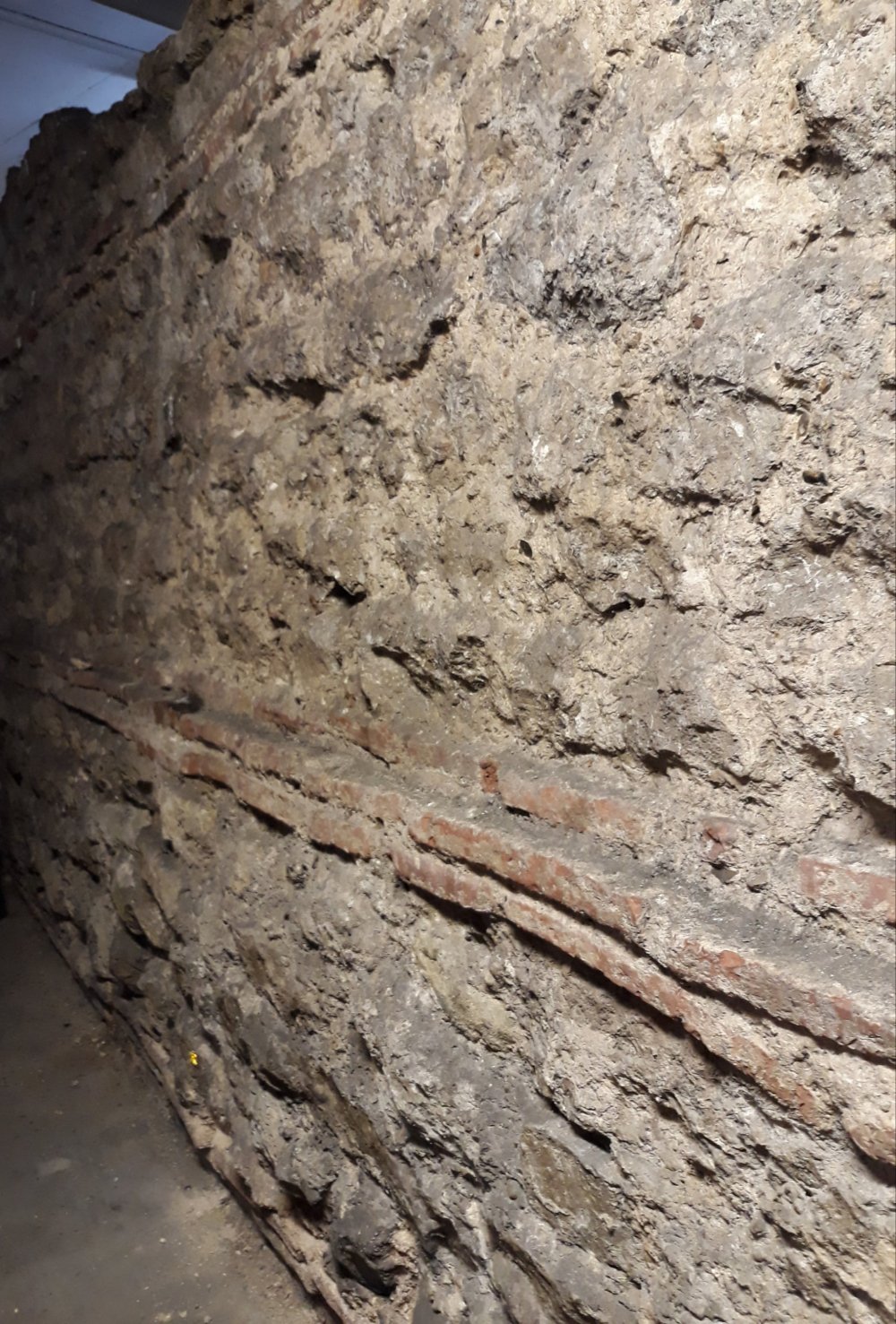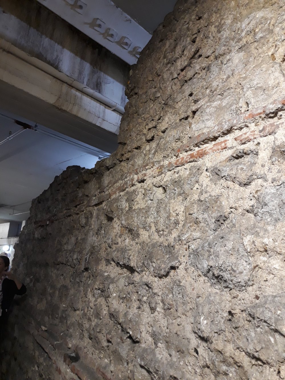 This forms part of the north wall that extended around the north, east and west boundary of Londinium. Today it is found underground in a car park on London Wall.